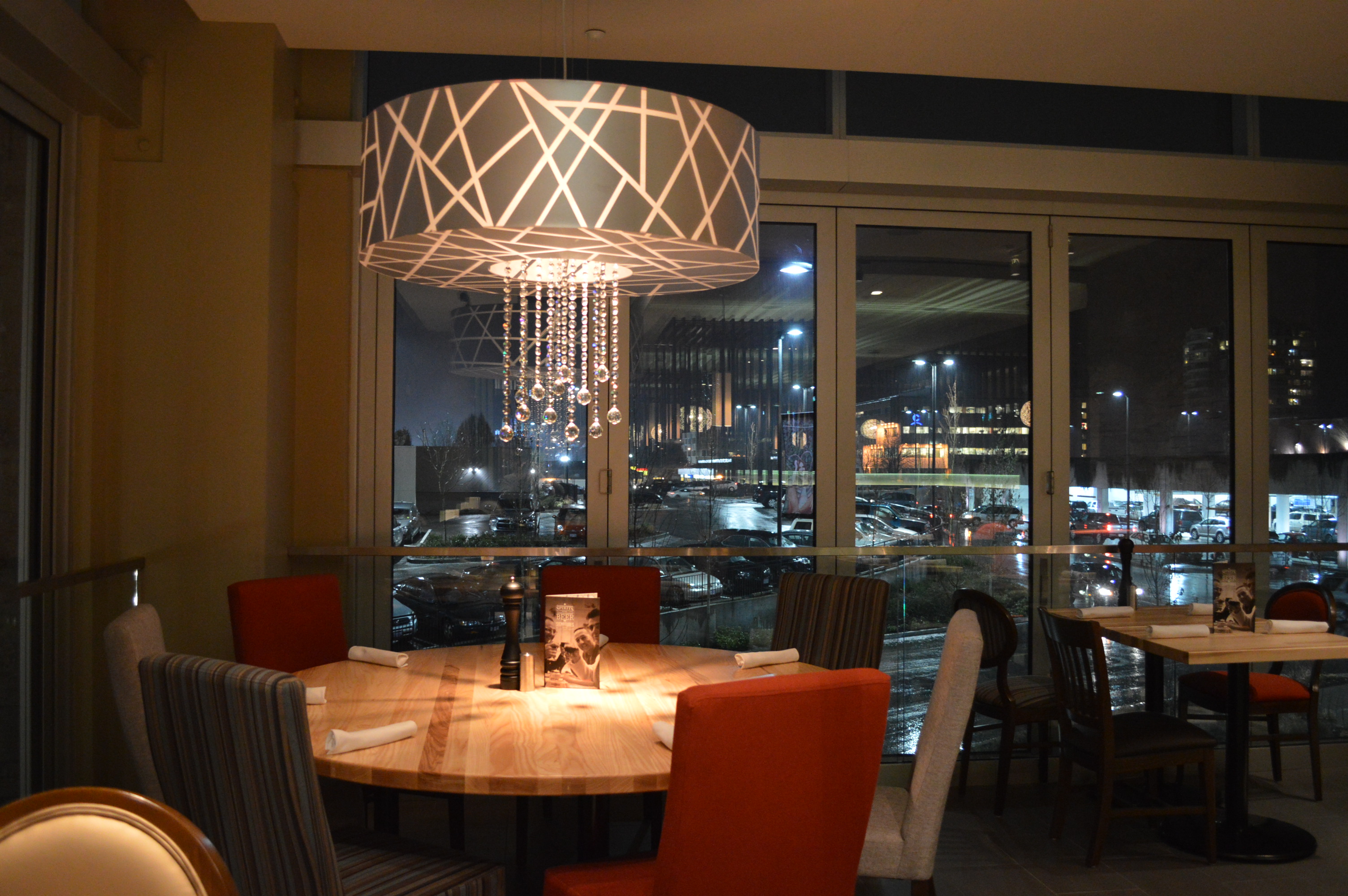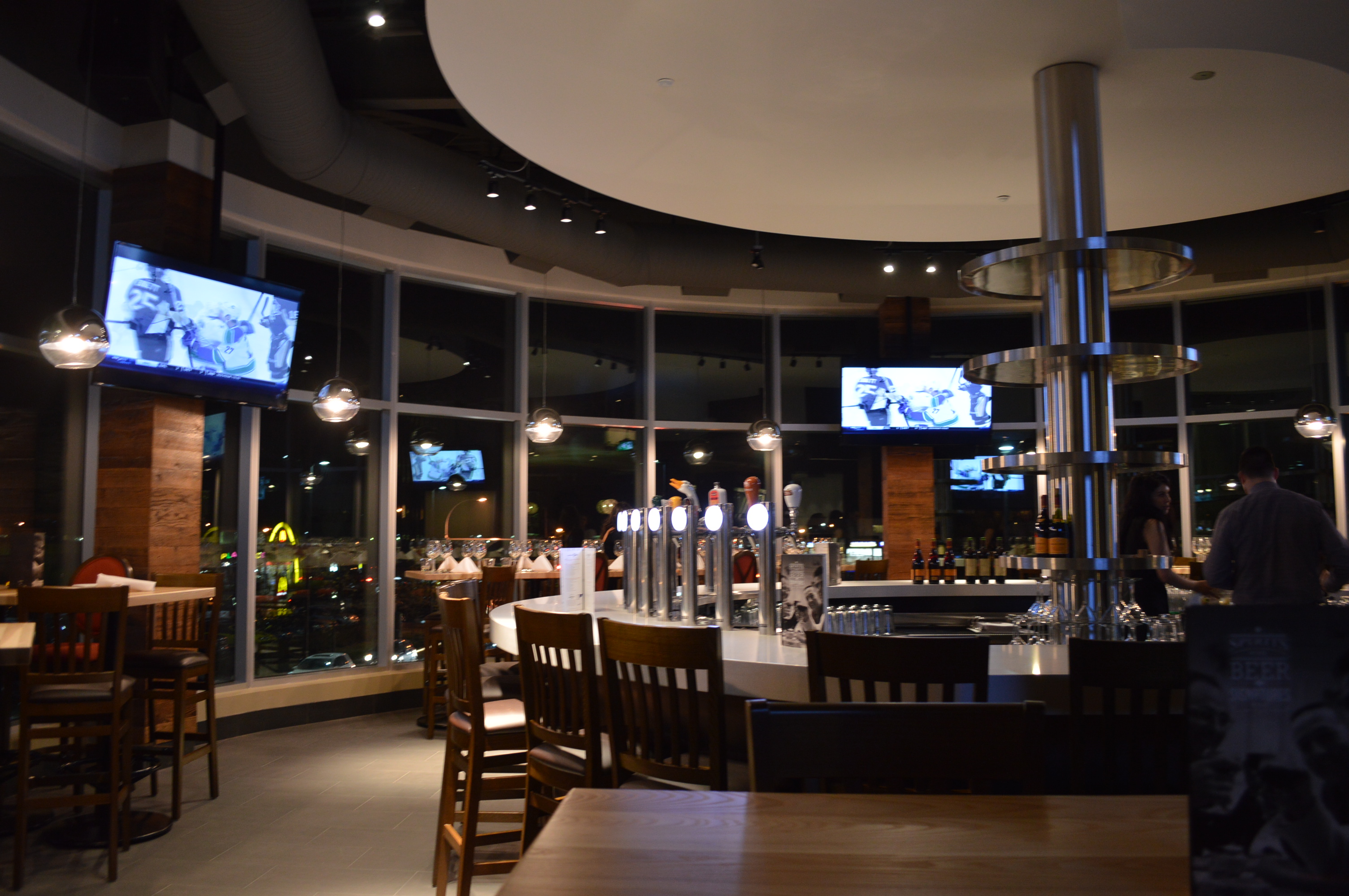 The new location is unlike any other Milestones. It features a circular bar, lounge and dining room sitting, and a selection of 14 draught beers. The lounge offers beautiful mountain views during clear days.