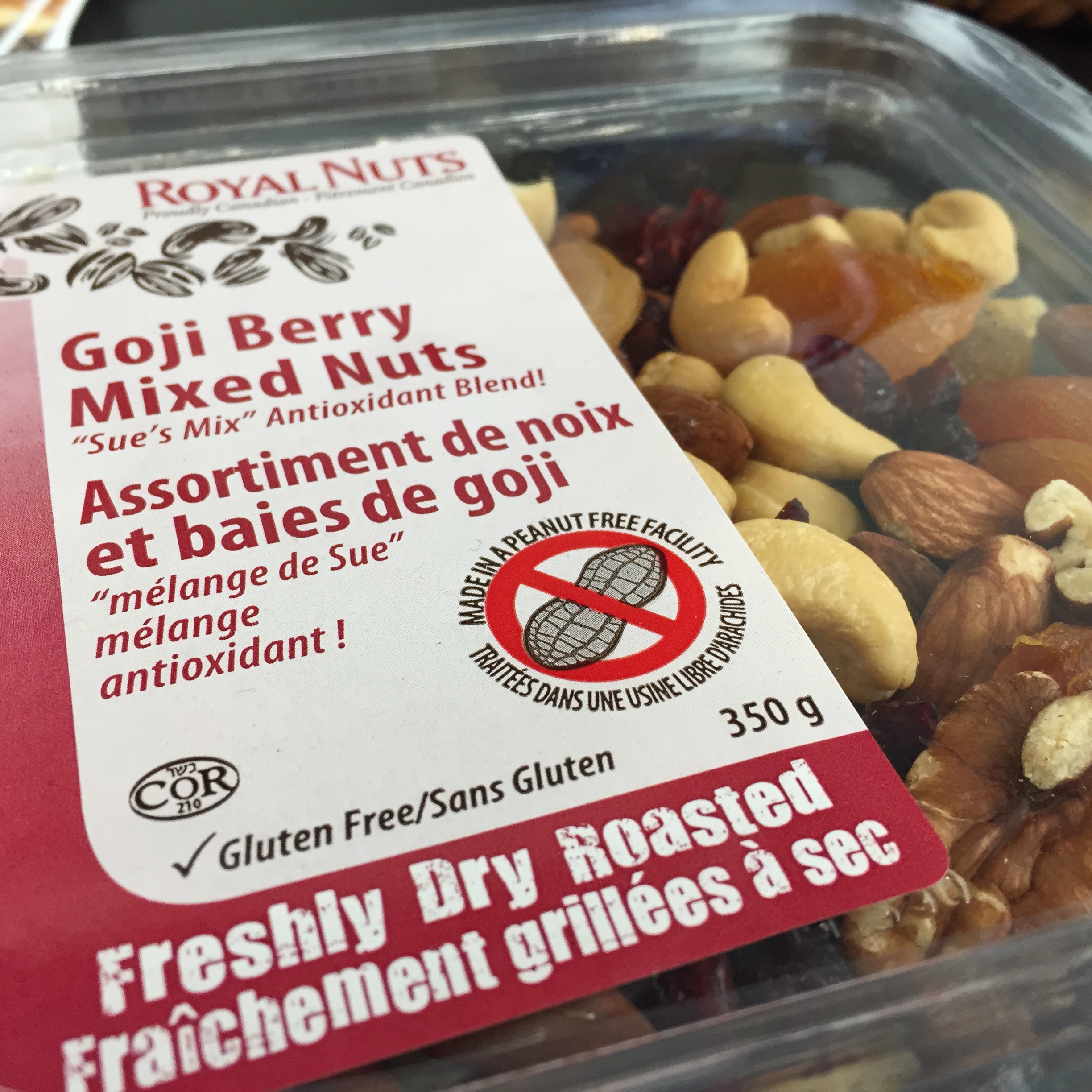 IMG_6084Royal Nuts are exclusively dry-roasted through prolonged exposure to heated air, not oil. Their unique process enhances their flavour, scent and crunch without adding calories or reaching temperatures that hinder the healthy nutrients nuts naturally boast. The nuts are produced and packaged in a nut-free facility and can safely be consumed by anyone who suffers from a peanut allergy alone. And they’re delicious.