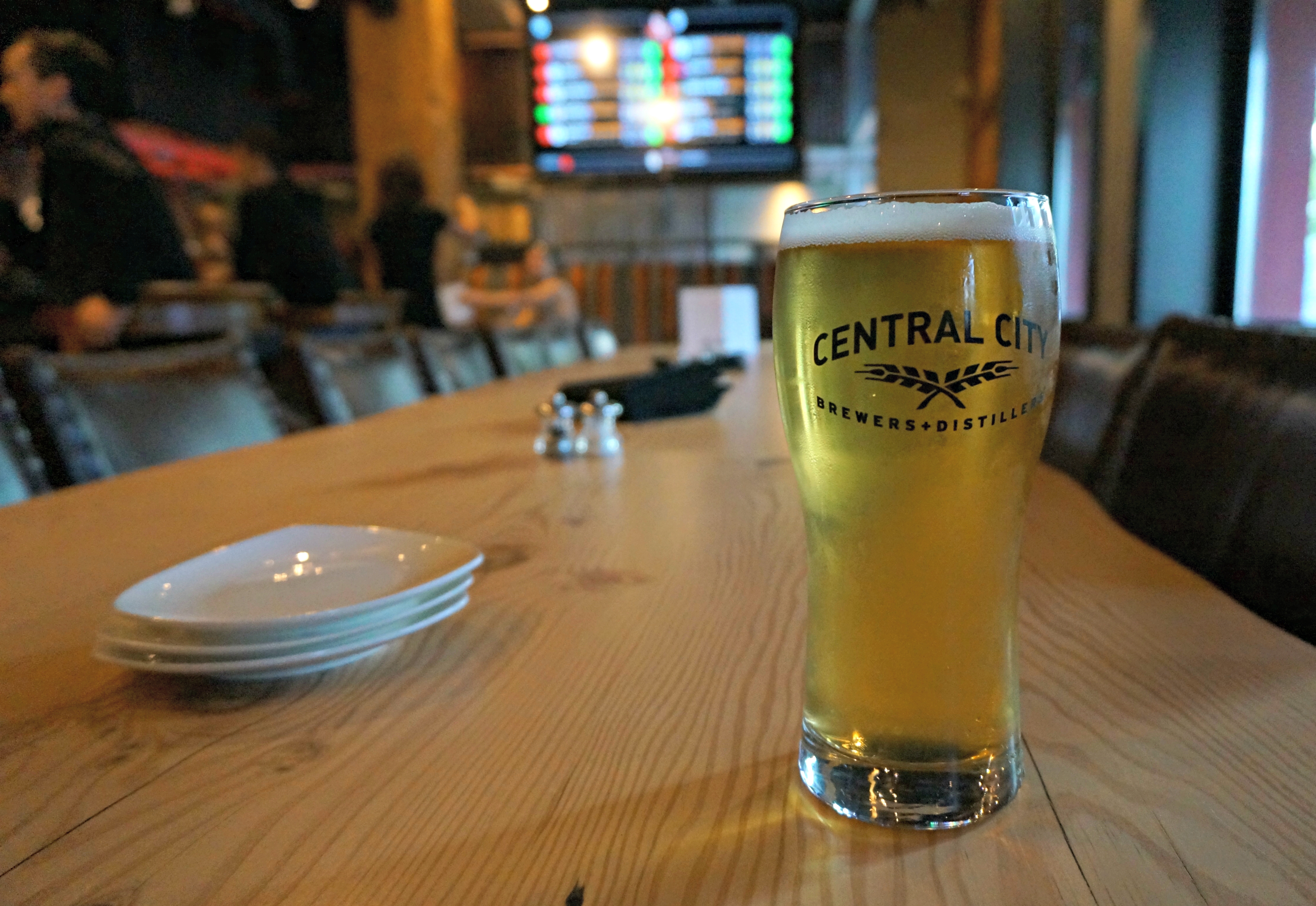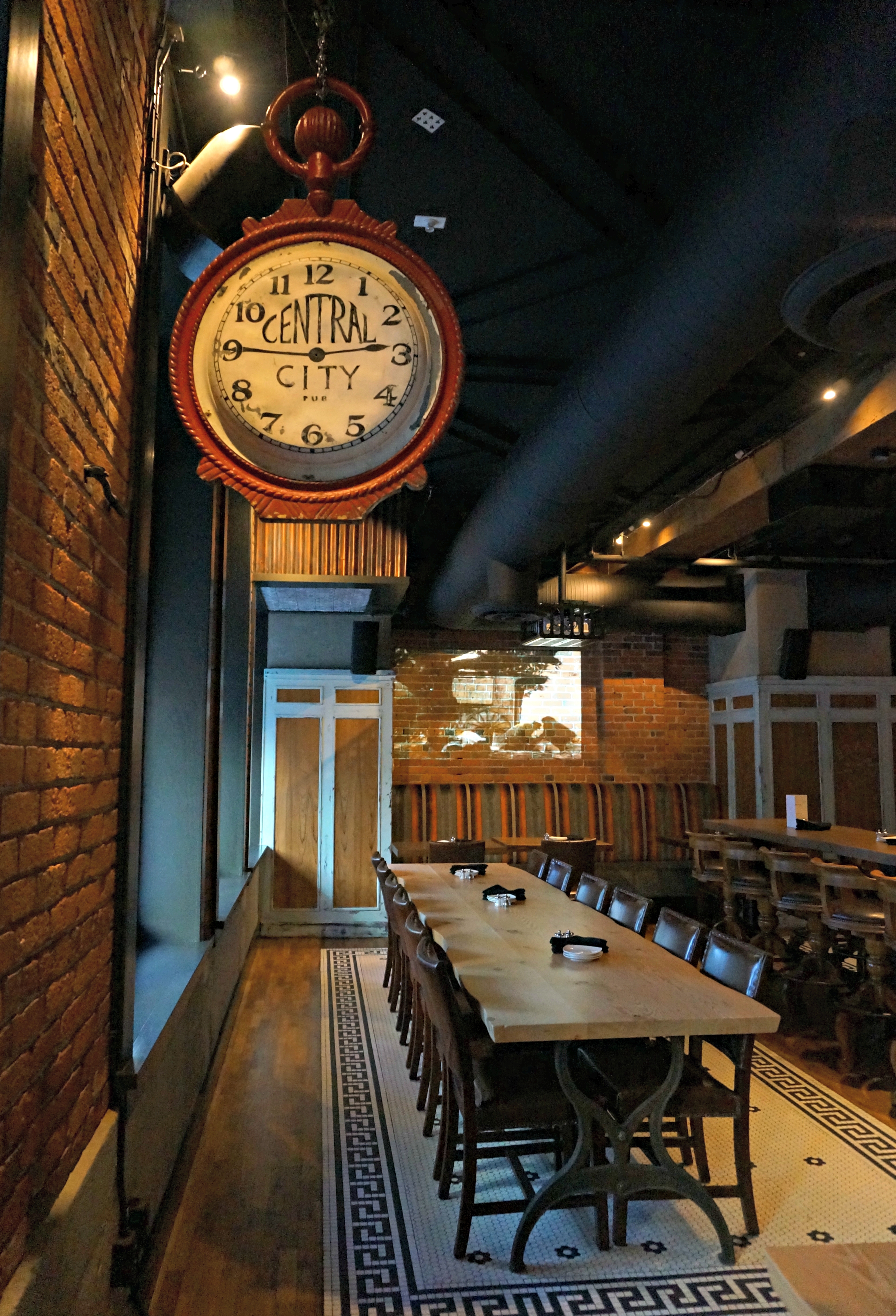 Central City tips its hat to Dix BBQ & Brewery by keeping some elements of its unique brick and beam character, the most prominent being the giant sign in the center of the restaurant.