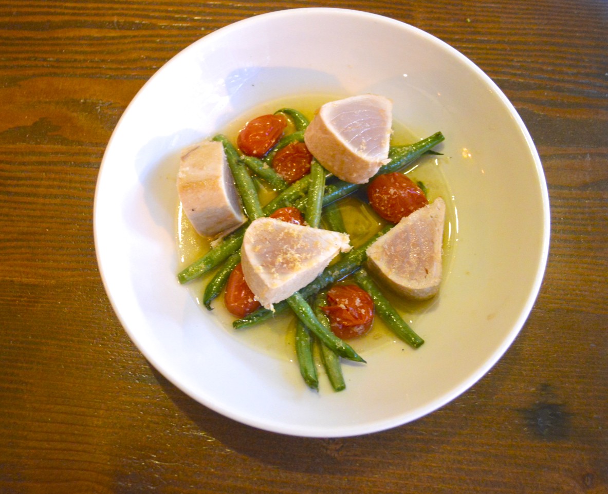Another one of my favourite dishes: The Albacore Tuna with roasted tomatoes and green beans. This simple dish was served with a delicate tomato dashi. The tuna was lightly seared and together with the broth was a perfect, light summer meal. The size of the dish was perfect for one person.
