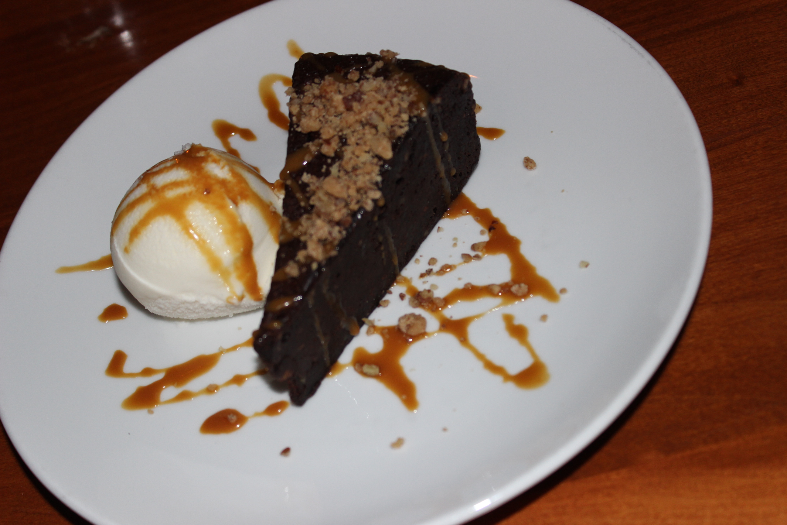 For dessert there were two sweet yet decadent choices – a Flourless Chocolate Cake and a Lemon Shortbread Parfait. The Flourless Chocolate Cake was dense, but had a pecan praline and vanilla ice cream to complement the dish.