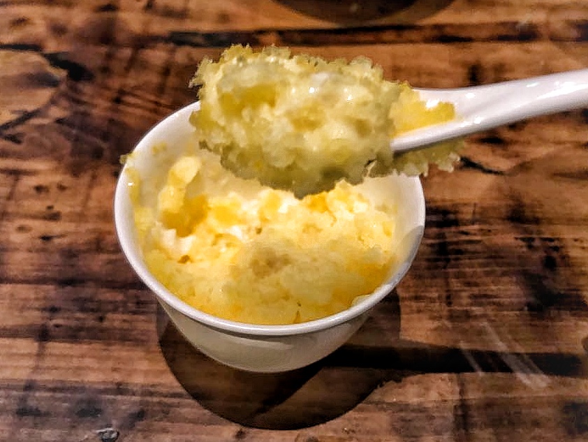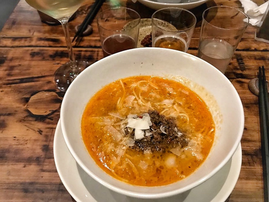 Another highlight of the evening was the Tantanmen – as most of the tasting menu are small bites, the tantanmen rounded out the meal quite nicely and provided a good portion of noodles and soup to provide a filling tasting menu. The broth is made of a mixture of chicken and beef stock, with coconut milk and coconut flakes. The noodles are different than ramen noodles, thin and round, and served al dente topped with ground US Wagyu beef. The soup broth wasn’t too salty, and I could see myself ordering this just on its own with a beer for dinner.