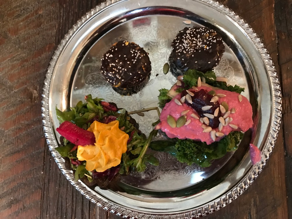 Our tasting plates offerings included hummus made with beets and sweet potato in bread bowls and gluten free brownies. Veridict: beet hummus rocks!