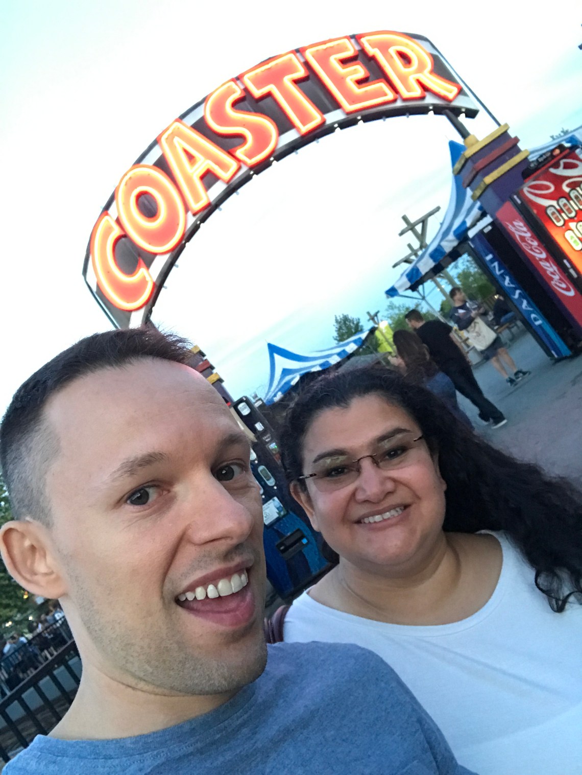 Now I love kids, I really do. But it was a lot of fun to have the place to ourselves. This is really a fun summer date night. The ride lines were smaller, and if you show up right at opening, the lines are non-existence.