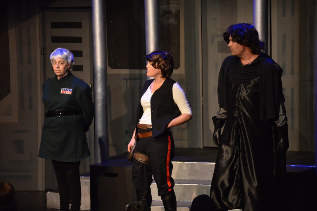 The show starts off with “A long time ago, in a galaxy far, far away…” video beginning and then an introduction by Obi-Wan or someone similar to him. We, the audience, is the Jedi Council. The skills of a Jedi vs the skills of the improviser is highlighted in this Star Wars parody. Who is the Laugh Jedi and true Master of the Farce? We as the council choose the Laugh Jedi!