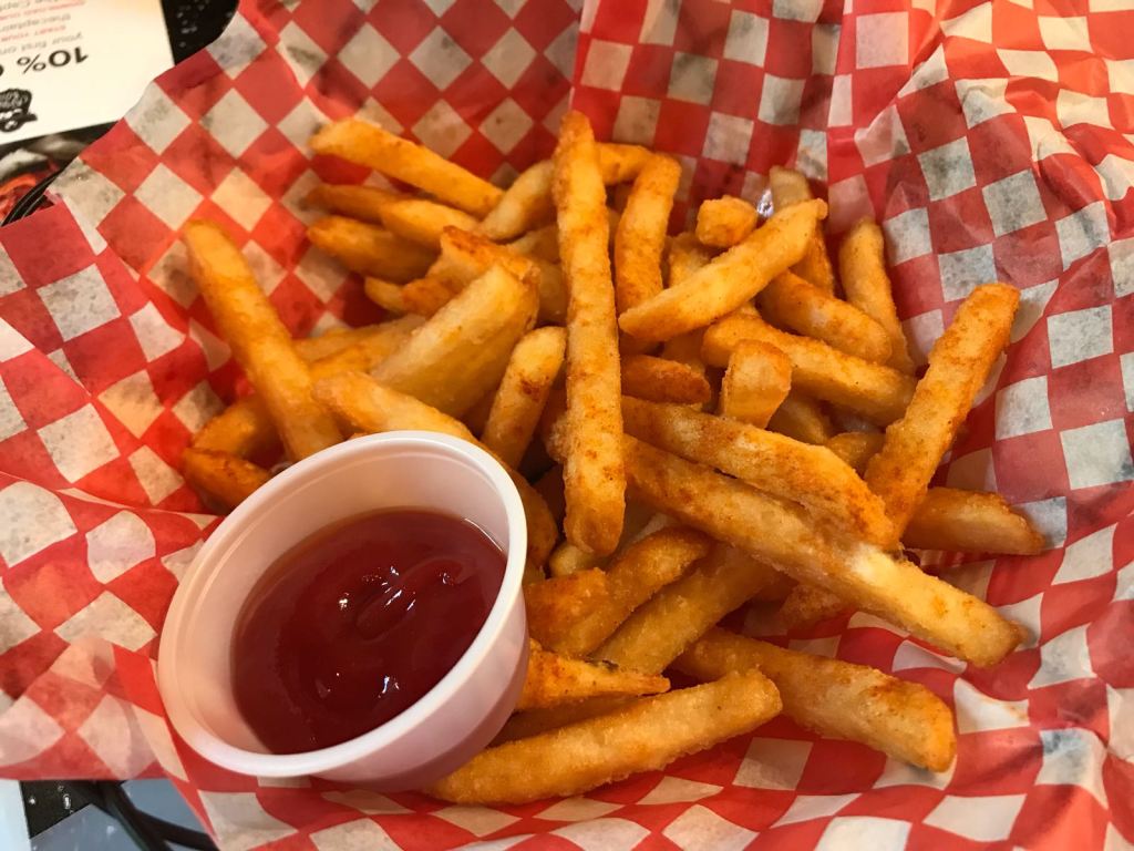 Sides include french fries, yam fries, cajun fries, calamari, cajun seafood fried rice, and more!