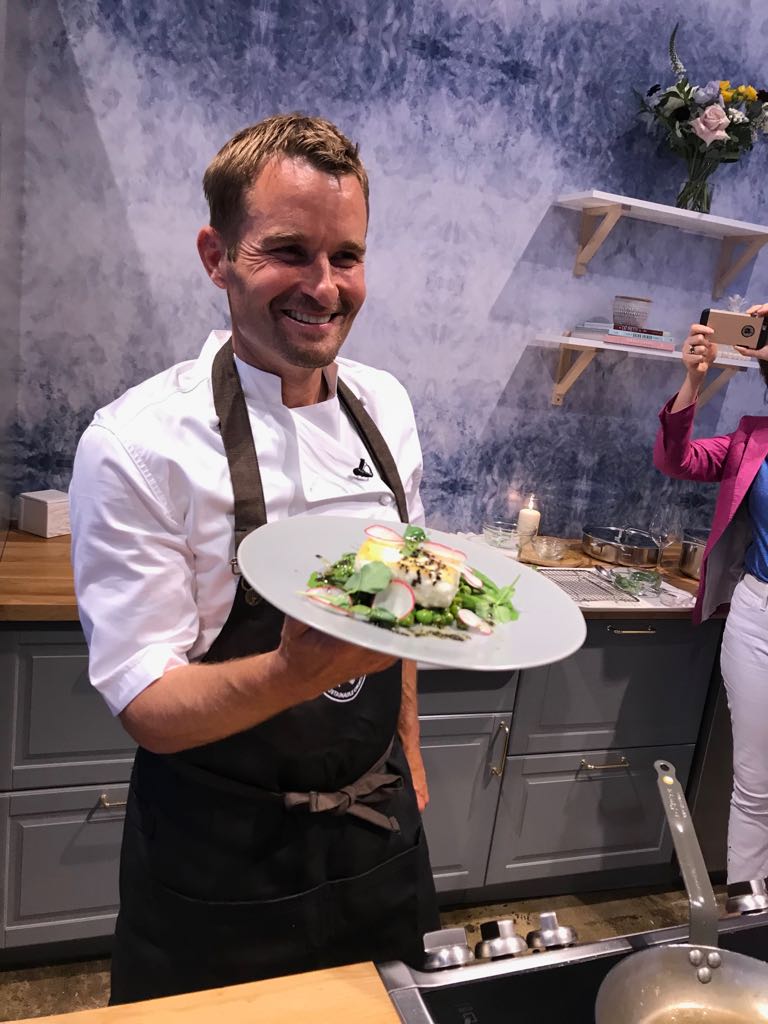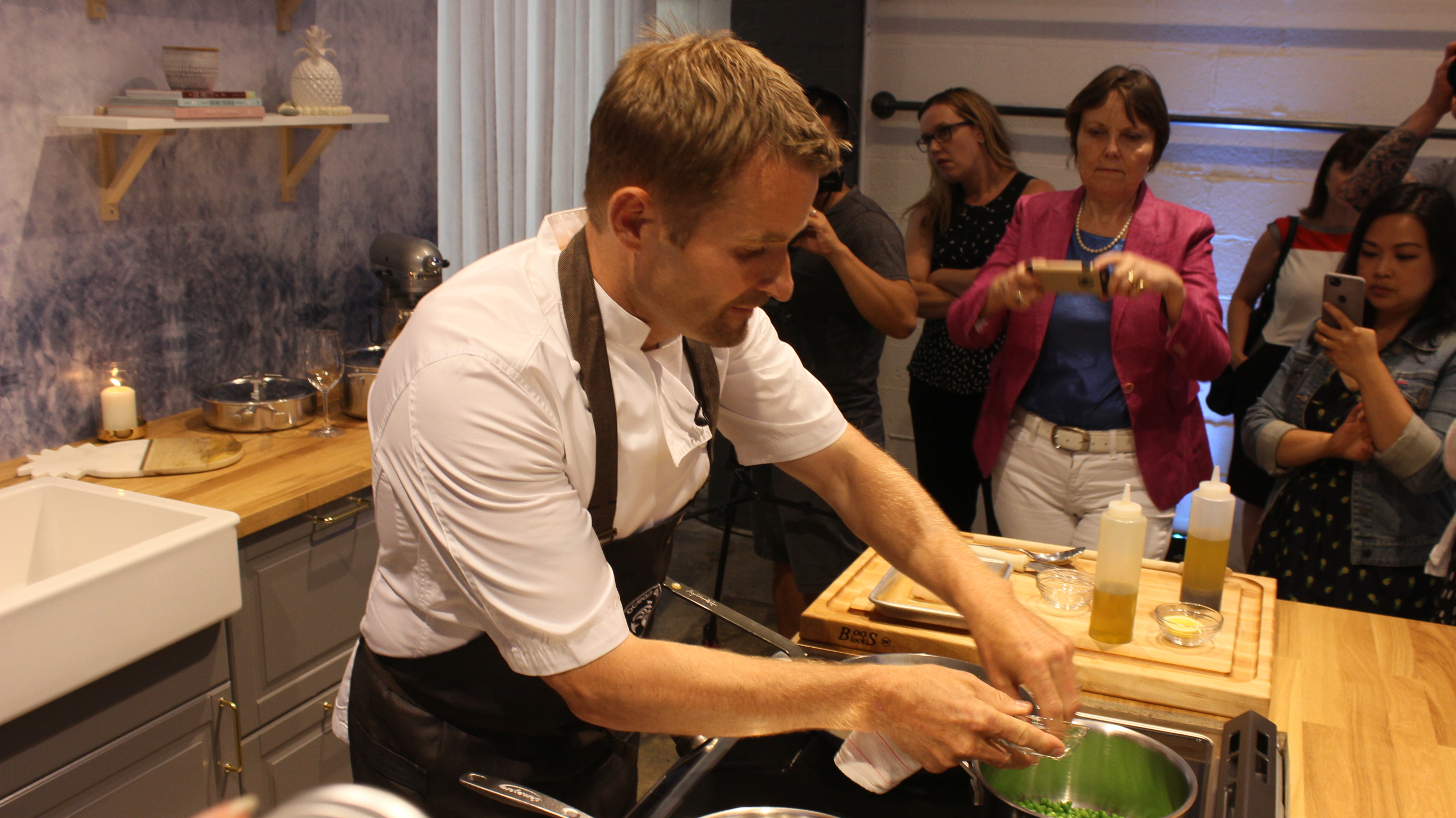 After the crash course in interior design, we were treated to a cooking demo by Ned, who taught us all some helpful tips on cooking and plating a halibut dish, including how to elevate it from a $10 dish to a $35-40 dish.