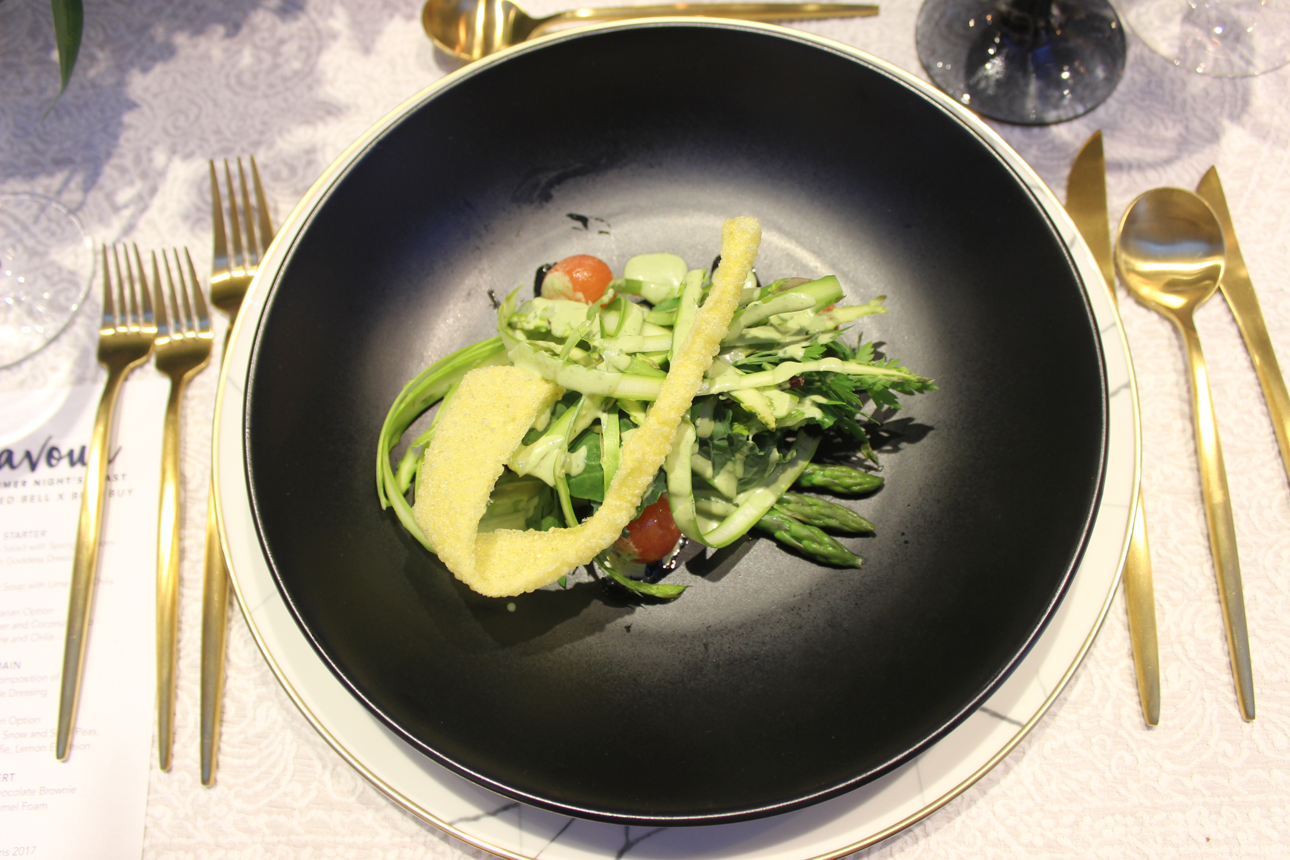 Dinner consisted of a Ocean Wise sustainable menu created by Ned and cooked by the talented chefs at Culinary Capers. We started off with a local asparagus salad with spring lettuces and green goddess dressing, followed by a crab and coconut soup with lime and chilis.