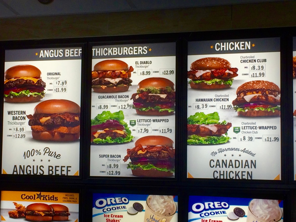 Conveniently priced at only $7.99 for a Lettuce-Wrapped Thickburger (Chicken Club), not only is it affordable but it only has a total of 370 calories and just 4 grams of sugar. With a total of 7 grams of carbs and 30 grams of protein…it easily takes the prize of being one of the lowest carb fast-food burgers available anywhere in North America.