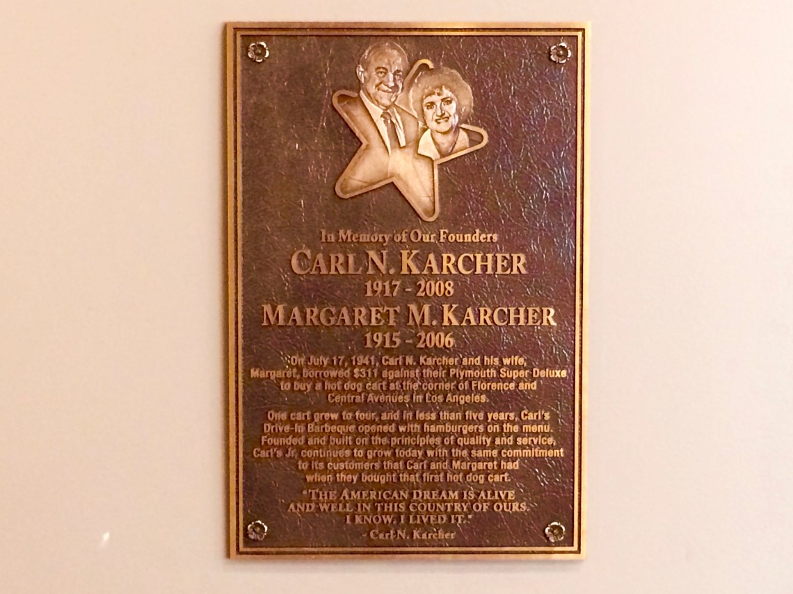 I was surprised to see the following plaque on the wall at this chain. It gives you a bit of the history of how Carl and Margaret Karcher established the original business, as well as just how important service was to them, as well as their emphasis on offering quality ingredients and menu items that meet or exceed the needs of their customers.