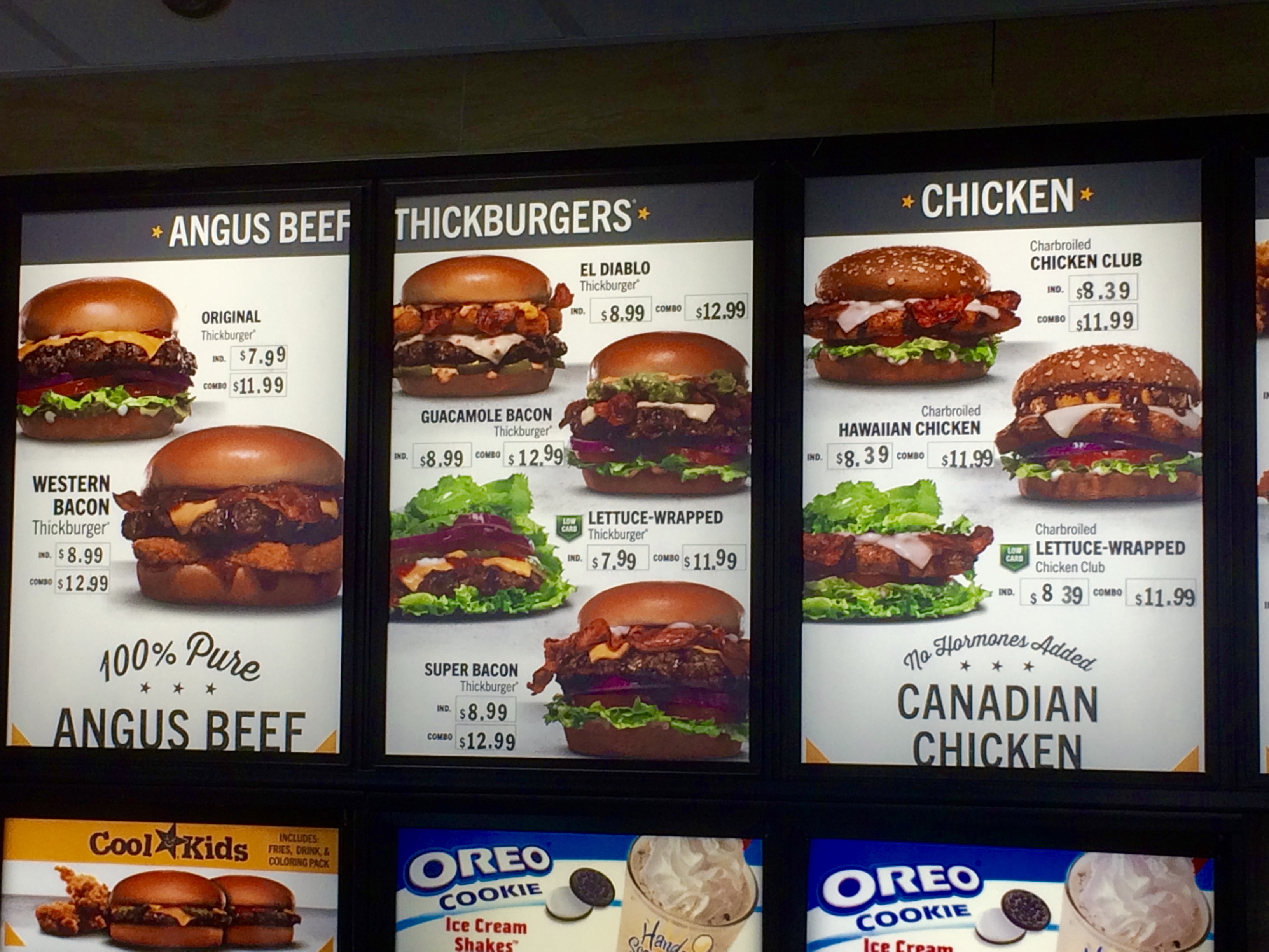 Conveniently priced at only $7.99 for a Lettuce-Wrapped Thickburger (Chicken Club), not only is it affordable but it only has a total of 370 calories and just 4 grams of sugar. With a total of 7 grams of carbs and 30 grams of protein…it easily takes the prize of being one of the lowest carb fast-food burgers available anywhere in North America.