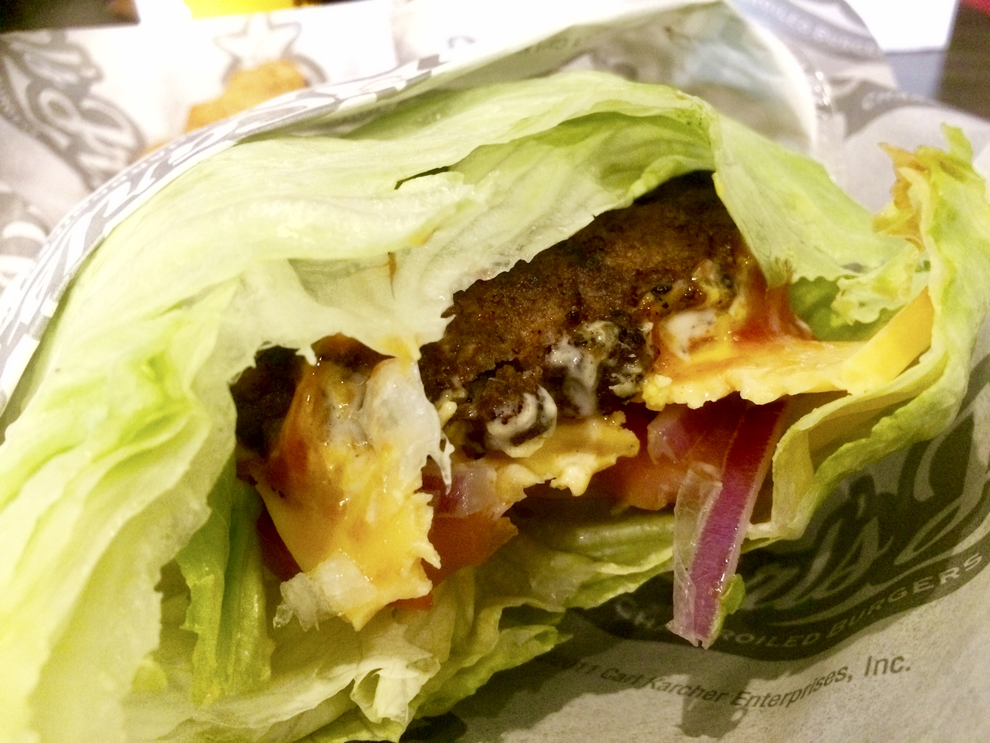What I appreciated about the healthy lettuce wrapped burger at Carl’s Jr is that it had been wrapped very carefully and with multiple lettuce leaves. I find that some fast-food restaurants don’t take the time to properly wrap the burger when swapping the bun for lettuce. If done properly, it becomes easier to pick up and eat, as well as prevent spilling the contents out the back of the burger when you take a bite.