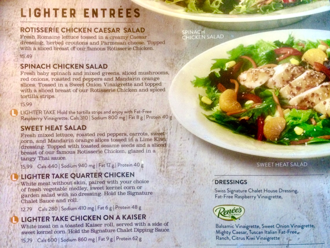 If you’re looking for a great tasting entree that is both paleo friendly as well as nutritious, simply order the “Lighter Take Quarter Chicken”. Costing only $12.79 CAD (plus tax), it’s not only affordable, but clocks in at a meager 280 calories, with 6 grams of fat, and a whopping 48 grams of protein…it easily fits with a keto/paleo diet whilst being easy on the wallet and good for the waistline.