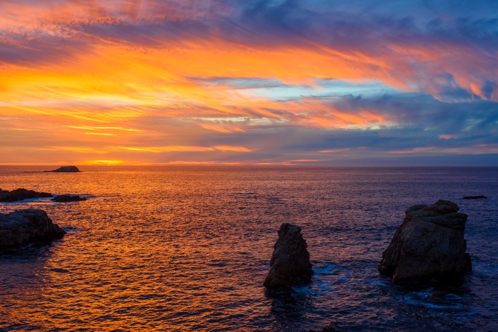 Drive along Hwy 1, also known as the Pacific Highway (PCH), from San Francisco, and head south to Big Sur for some gorgeous cliff-side views overlooking the Pacific Ocean. This area was made famous in recent years by HBO show Big Little Lies, and offers some breathtaking sunsets. It takes about 3 hours to make the drive along the coast from San Francisco, so plan accordingly if you want to catch the sun setting into the ocean here.