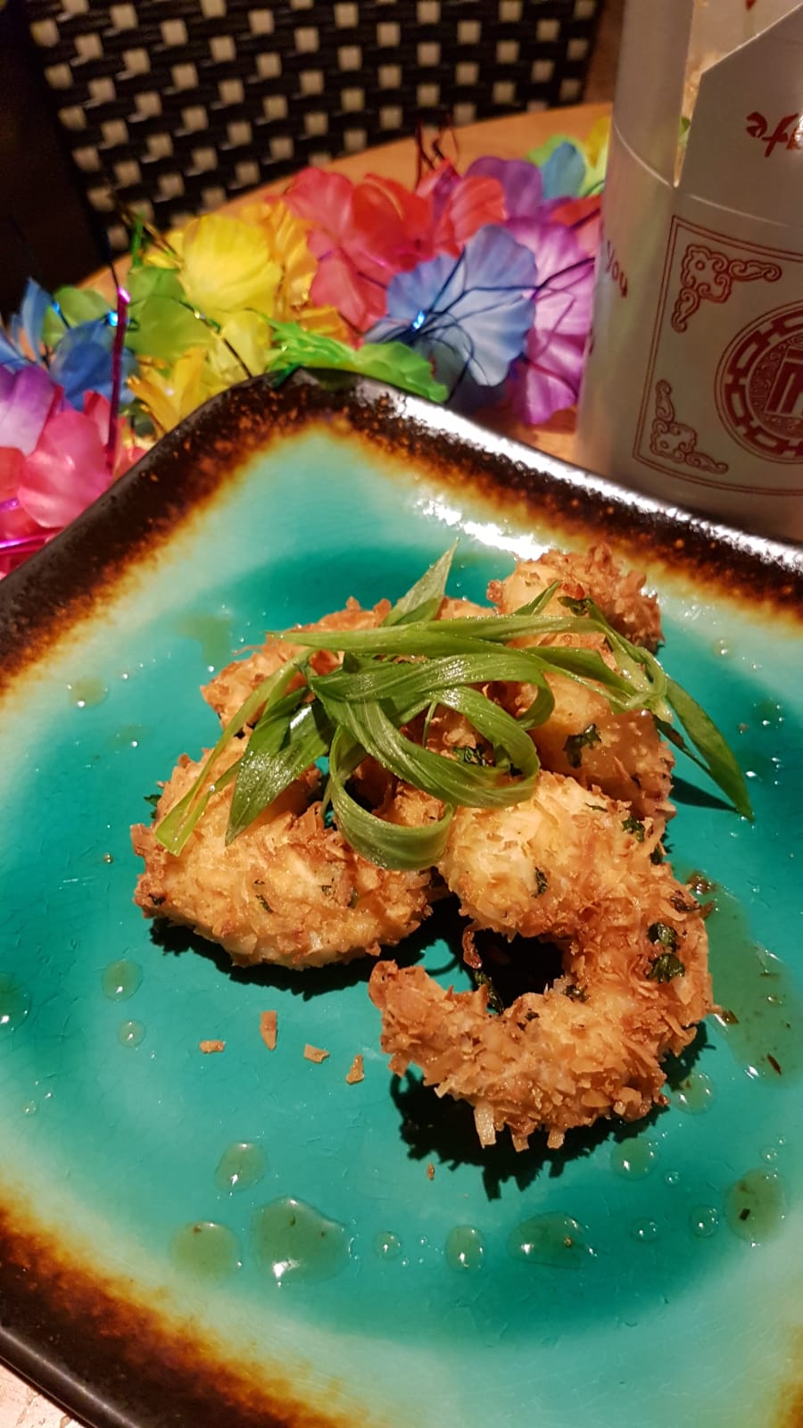 Their menu is pretty diverse as well. They have Polynesian, Korean, Chinese, and Japanese inspired food. I tried their Chicken Pineapple Fried Rice, Coconut Shrimp, and Tuna Poke’ Me. The fried rice was savoury and yet chunks of pineapples give it a kick of sweetness and tanginess. The shrimps were covered with crunchy coconuts and it comes with sweet dipping sauce. My favourite was the Tuna Poke’ Me! Avocado and onions mixed with furikake and chilli flakes, topped with ahi tuna, and crunchy taro chips! It just hits the spot J