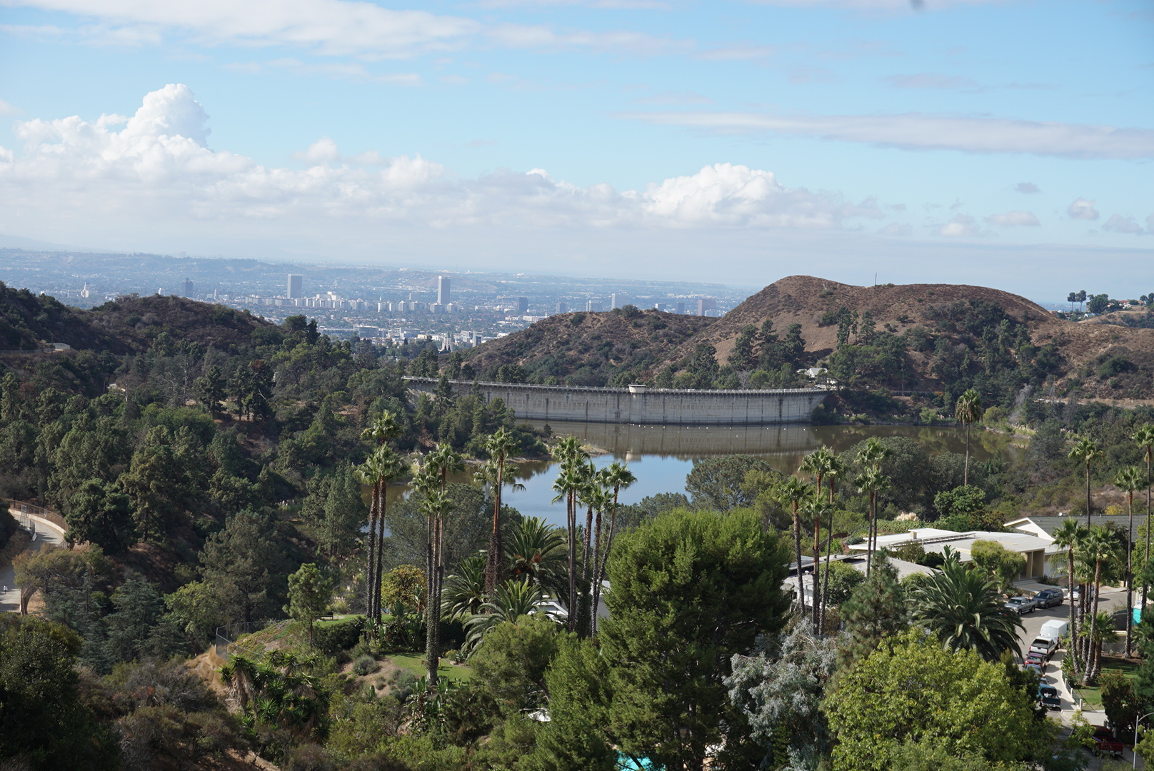 We were lead up winding roads through the Hollywood Hills, home to celebrities such as Salma Hayek, Madonna, Johnny Depp, and more. Nowadays several Hollywood producers, musicians, and celebrities still own homes here. No tour buses are allowed up the narrow roads up to the Hollywood sign, so our guided tour was the perfect way to get as close as we did. I highly recommend this tour as a great way to see the tour without having to fight your way to find the limited parking spaces accessible for personal vehicles or the rigorous hiking that might be required to get closer to the sign. We even managed to get a gorgeous photo of the LA city up on Hollywood Hills, overlooking the dam that provides Hollywood’s water reservoir.