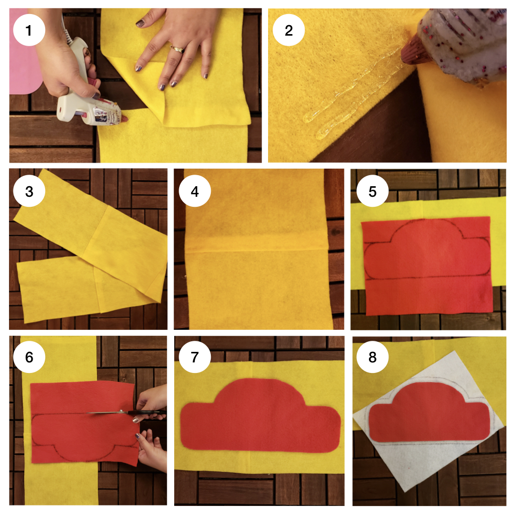 - Glue the white felt to the middle of the yellow felt.
