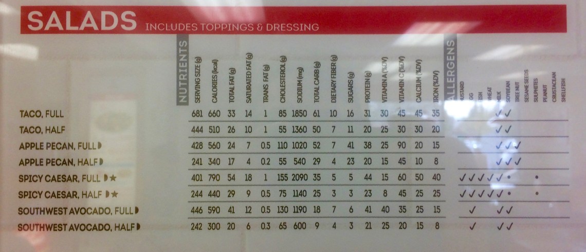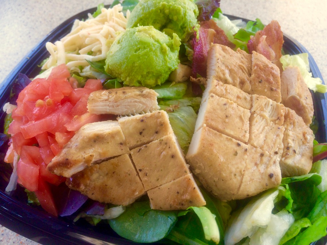 The Applewood Smoked Bacon does contain sugar, sodium phosphates, sodium erythorbate, and sodium nitrite, so it’s probably healthier to ask for a salad without it. The Grilled Chicken Breast is juicy, not overly grilled, but then again I suspect it was precooked on the grill and then later reheated in a microwave. The chicken is pleasantly seasoned. And finally, the creamy avocado is made with a simple combination of avocados, lime juice, and salt.
