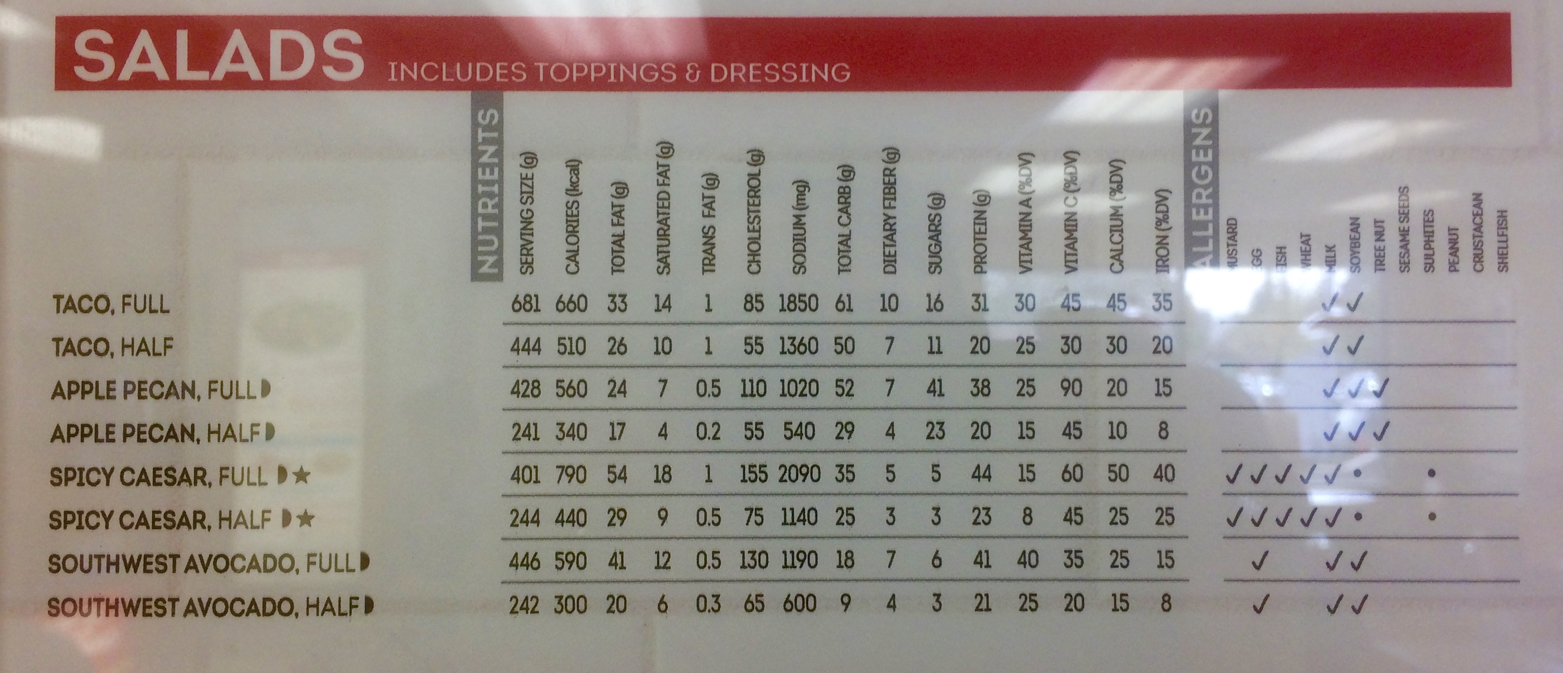 The Applewood Smoked Bacon does contain sugar, sodium phosphates, sodium erythorbate, and sodium nitrite, so it’s probably healthier to ask for a salad without it. The Grilled Chicken Breast is juicy, not overly grilled, but then again I suspect it was precooked on the grill and then later reheated in a microwave. The chicken is pleasantly seasoned. And finally, the creamy avocado is made with a simple combination of avocados, lime juice, and salt.