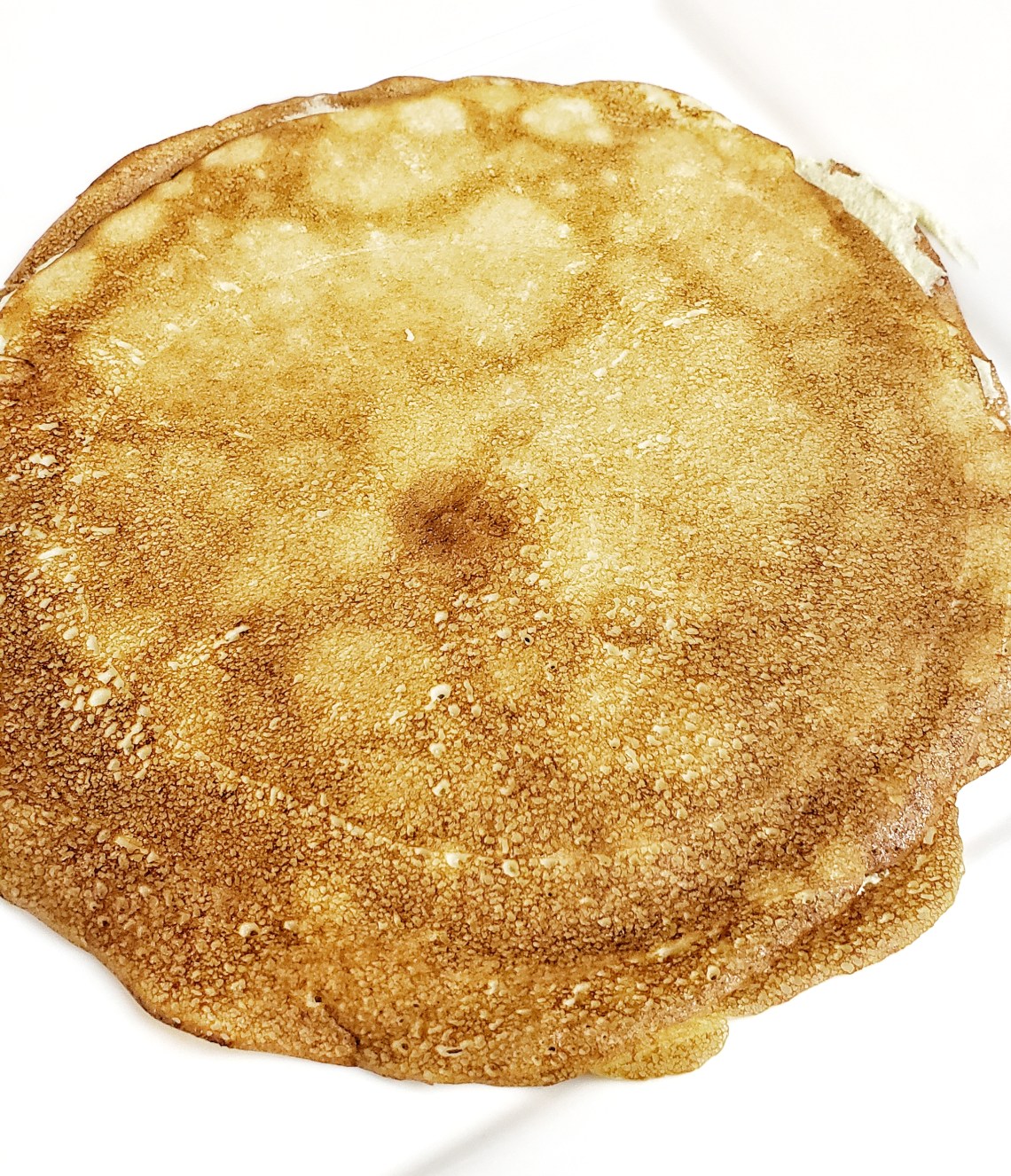 - When the top side is dry (about 45 seconds), flip the crepe with a spatula.
