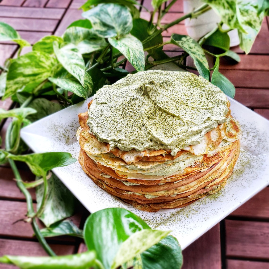 My mom has recently become a fan of making her own crepe with strawberry jam or marmalade jam. She was happy to find an easy crepe recipe on Food Wishes (Chef John) website and shared it with me. Then I suggested that we make a Matcha Mille Crepe Cake! It’s so easy, but required a bit more time to make. No baking required! Below I will walk you through my steps on how to make a Matcha Mille Crepe Cake.