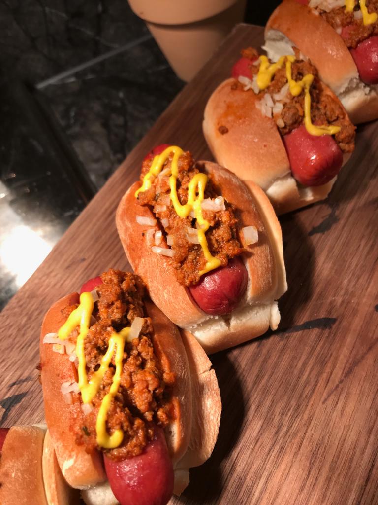 Mary and I both felt like Hollywood celebrities entering the VIP reception being hosted at The SportsBar to influencers and travel trade media by Discover LA. The SportsBar was transformed into your typical sunny LA rooftop experience, featuring comfy patio lounge chairs, faux palm trees, and an LA cityscape backdrop. We were welcomed with LA-inspired cocktails and a taco and hot dog bar, paying homage to LA’s popular Mexican street food and famous Pink’s Hot Dogs.