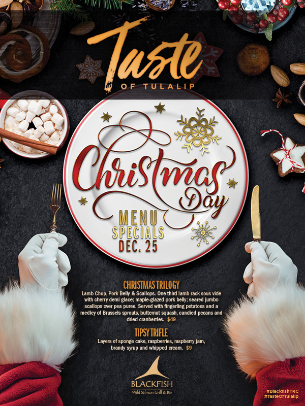 Right now they are inviting everyone to come and celebrate Christmas Dinner (Dec 25) and New Year’s Eve (Dec 31) at the Blackfish Wild Salmon Grill & Bar.