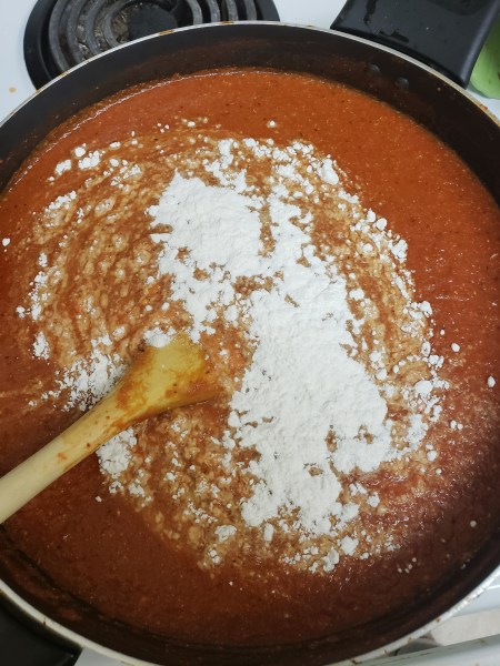 - Remove from heat, add greek yogurt and flour, and stir. The flour is to thicken the bisque.