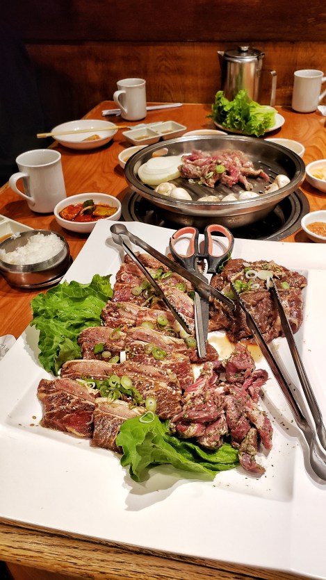 Us carnivores ordered one bulgogi (19.99), two LA galbi ($24.99 each), one neukgansal jumoolluk ($23.99), sundubu jjigae (spicy soft tofu soup with seafood and beef with a bowl of rice, $12.99) and bowls of rice ($1.50 each). They were all delicious! My favourite was the LA galbi. The meat was just perfect and the seasoning is savoury and yet a bit sweet. My second favourite was the bulgogi since I really liked the seasoning too.