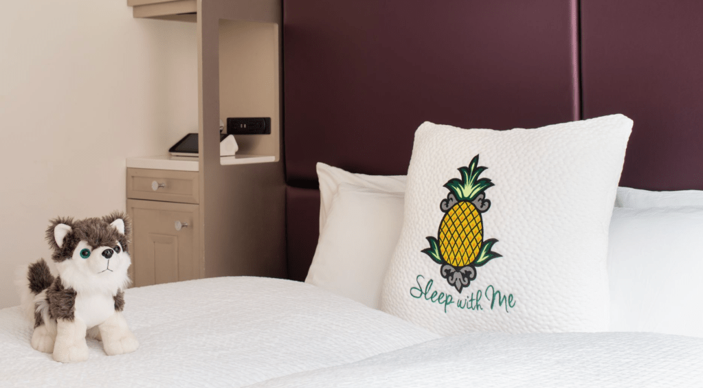 Firstly, the décor: Every inch of this hotel is adorned with cute little pineapples. From the lobby to the elevator to the actual room, you’re surrounded by adorable pineapple art and decor. It’s like living inside a real-life Pinterest board but with more personality and sass.