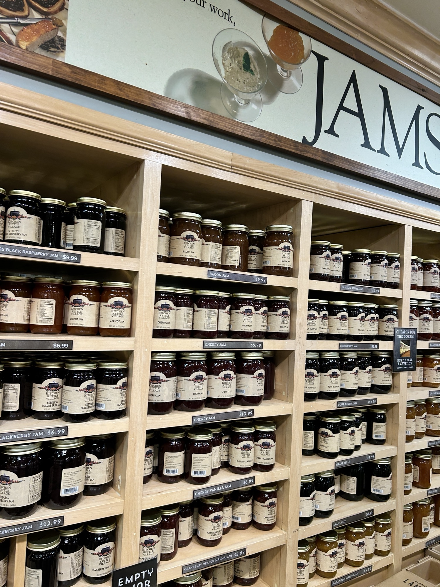 Before leaving, we stopped by Kitchen Kettle Village, known for its iconic Amish canning kitchen. Though Kitchen Kettle boasts 42 shops, the heart of the place is its family-run kitchen, where local women make jams, jellies, and other delicious treats right before your eyes. We watched as they stirred pots of vibrant preserves, baked pies, and filled jars with relishes and salsas. Of course, we couldn’t leave without taking home a few jars of their famous apple butter.