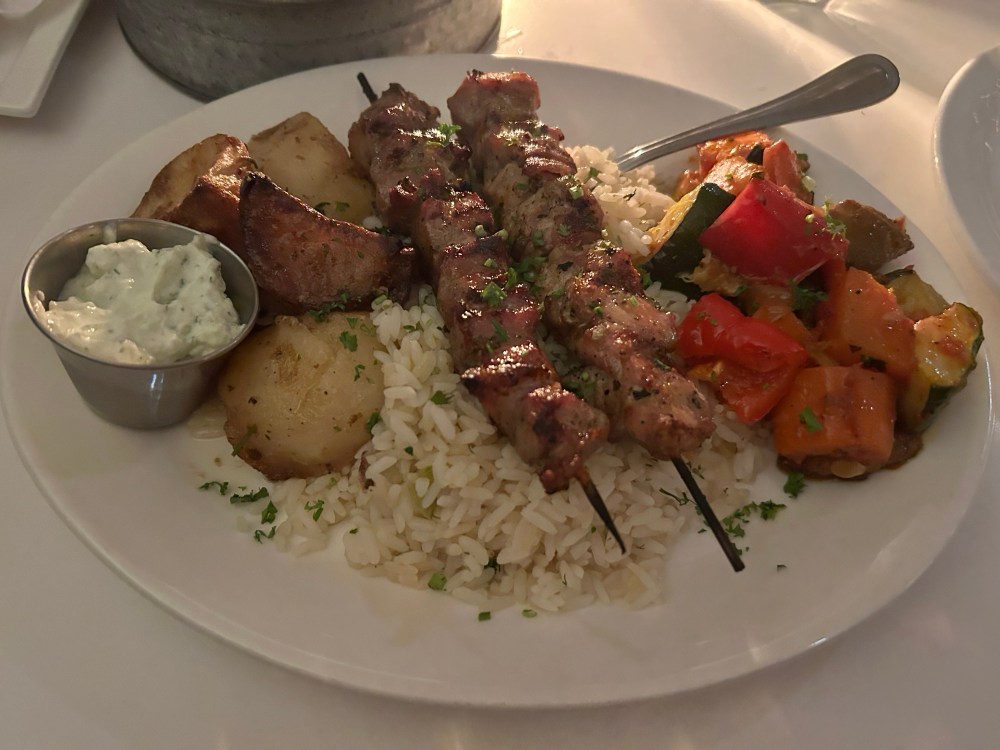 I ordered the Souvlaki Platter for myself, and I’m not going to lie—I planned to take some home. There were two skewers and a spread of generous sides. It was so good. I managed to polish off nearly all of it. The portions at The Greek are no joke. If you’re sharing with friends, it’s more than enough to keep everyone happy. Was Josh both impressed and amused at my delight with the food? Maybe.