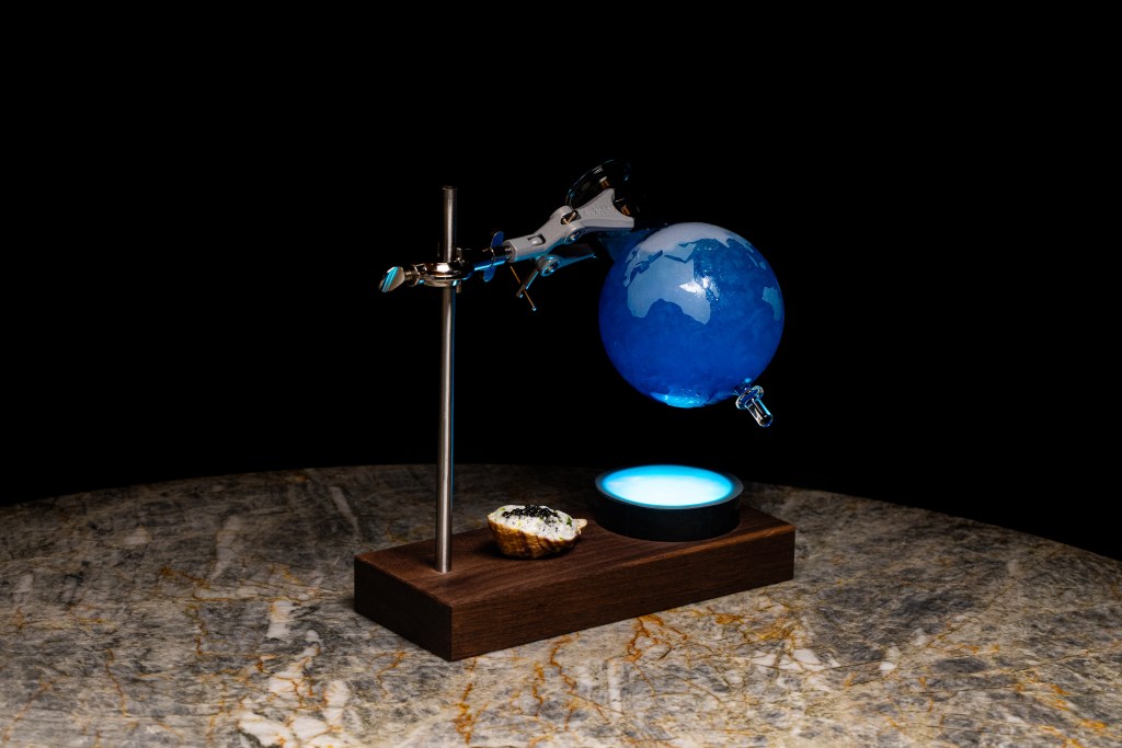 - Pale Blue Dot – A tribute to all the water on Earth, this vibrant blue cocktail features Pacific Ocean blue algae, oyster shell gin from North Vancouver’s Copperpenny, oyster leaf distillate, and lacto-fermented cucumber pineapple syrup.